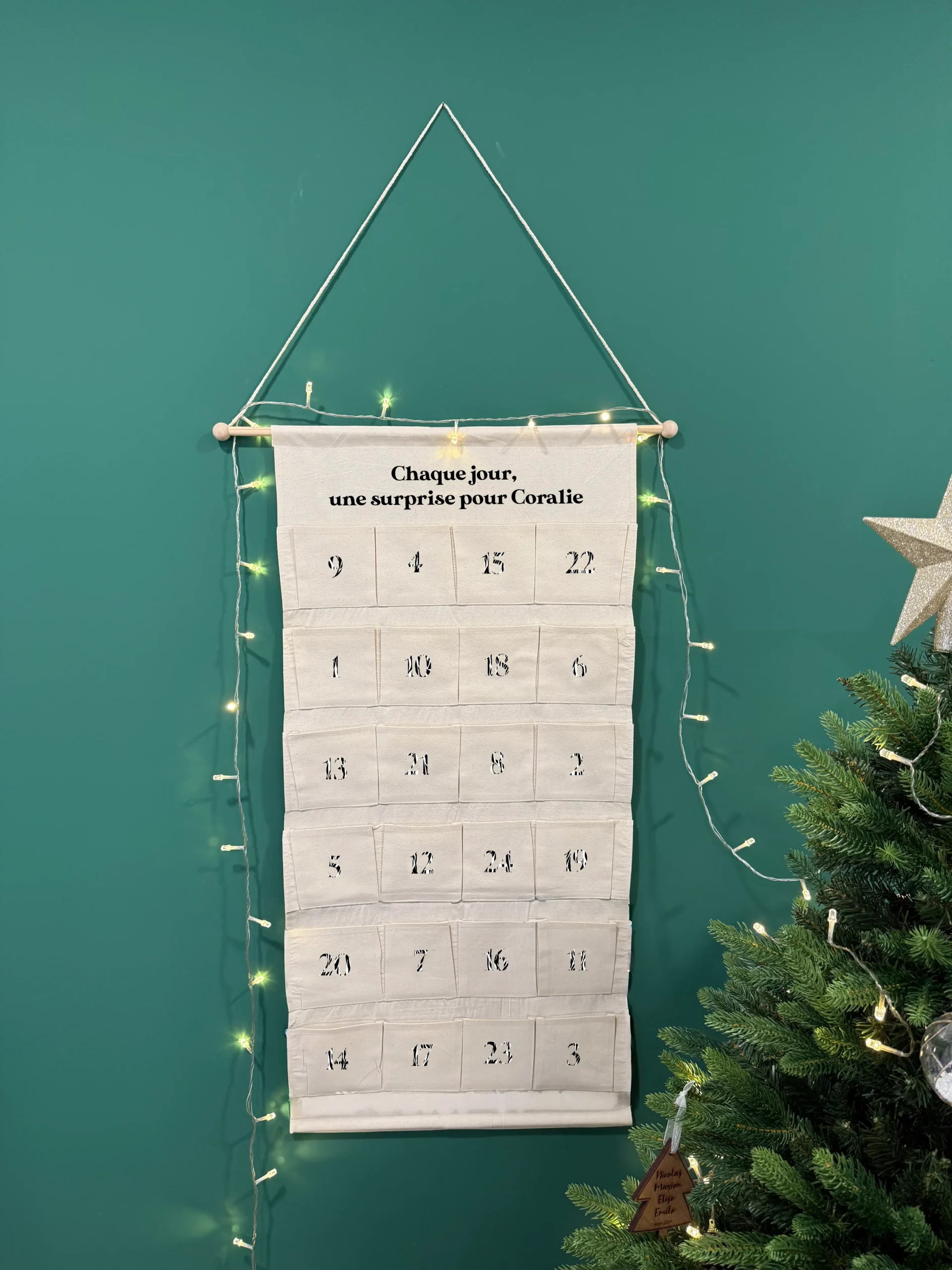 Ce calendrier devient vite un incontournable de votre décoration de Noël : il apporte une touche naturelle et authentique à votre intérieur tout en créant des moments d’attente pleins de complicité.