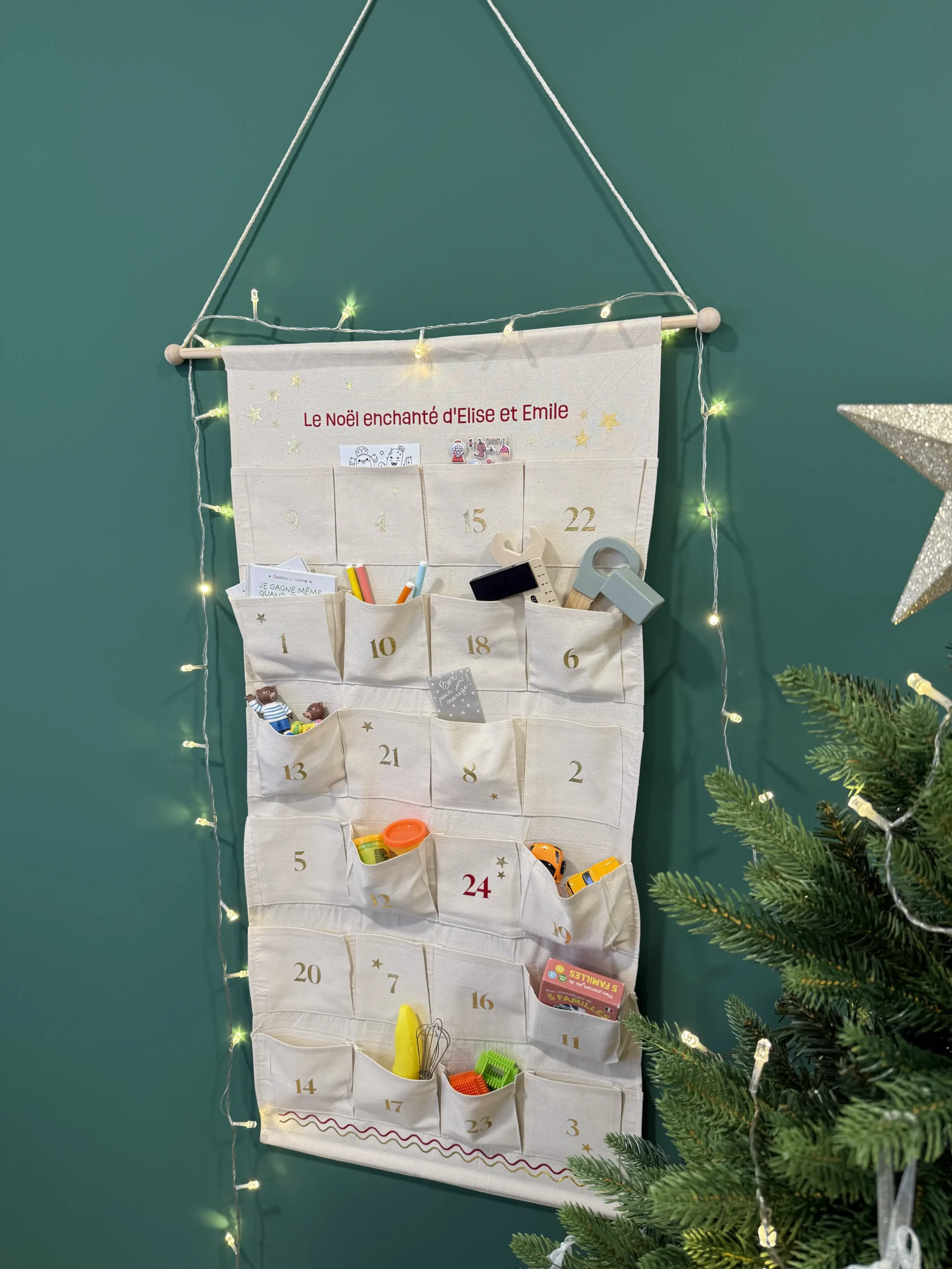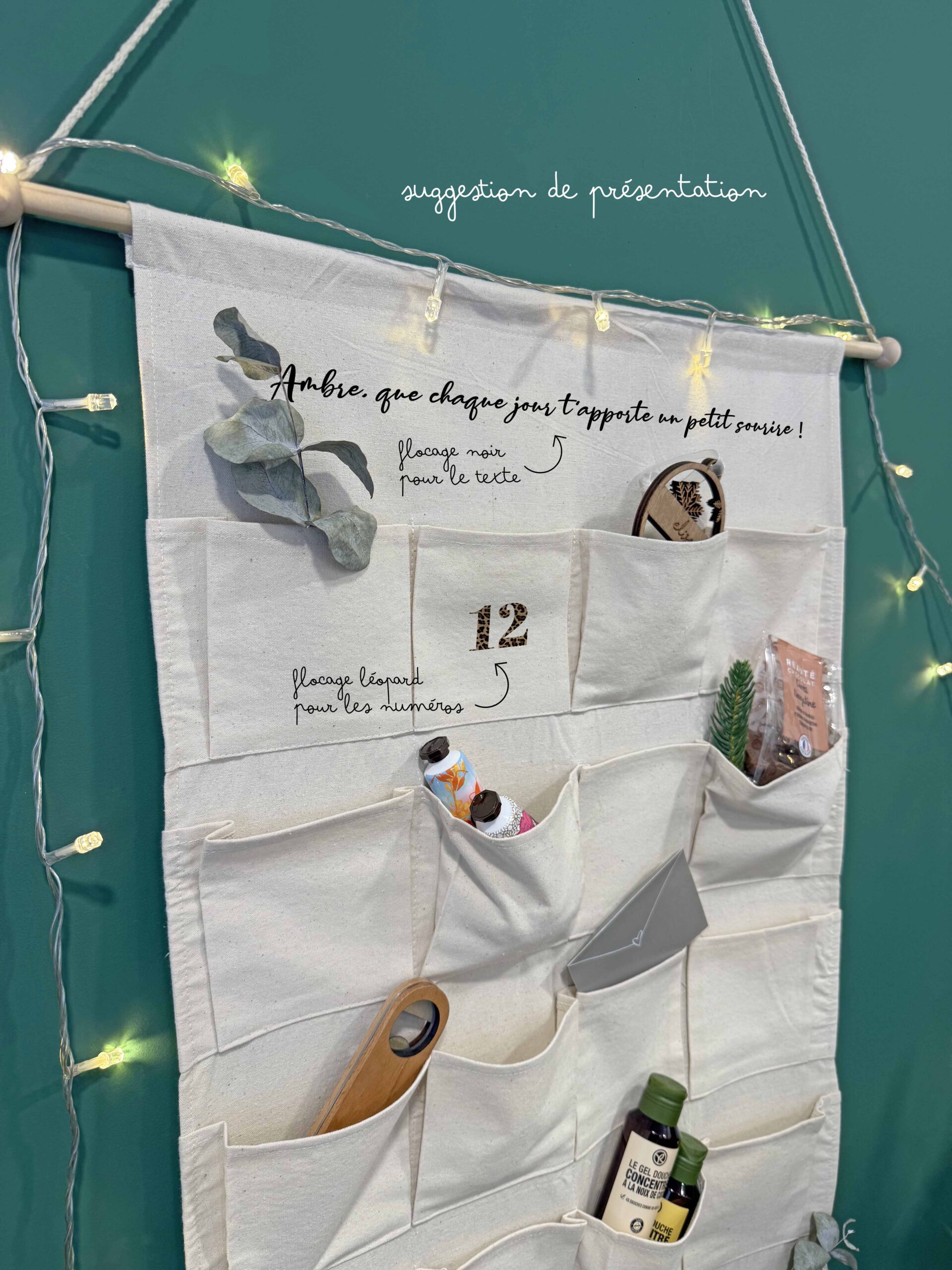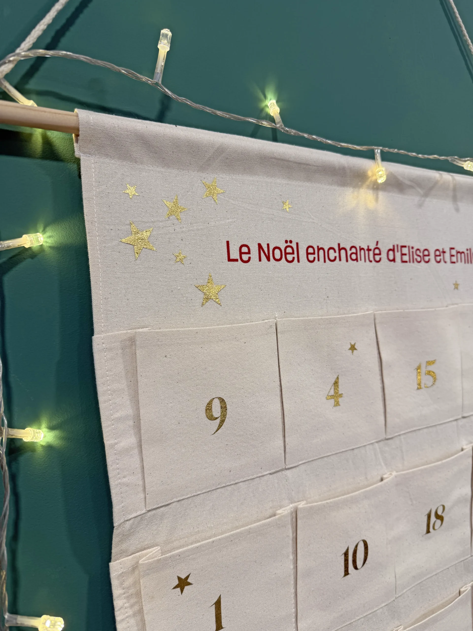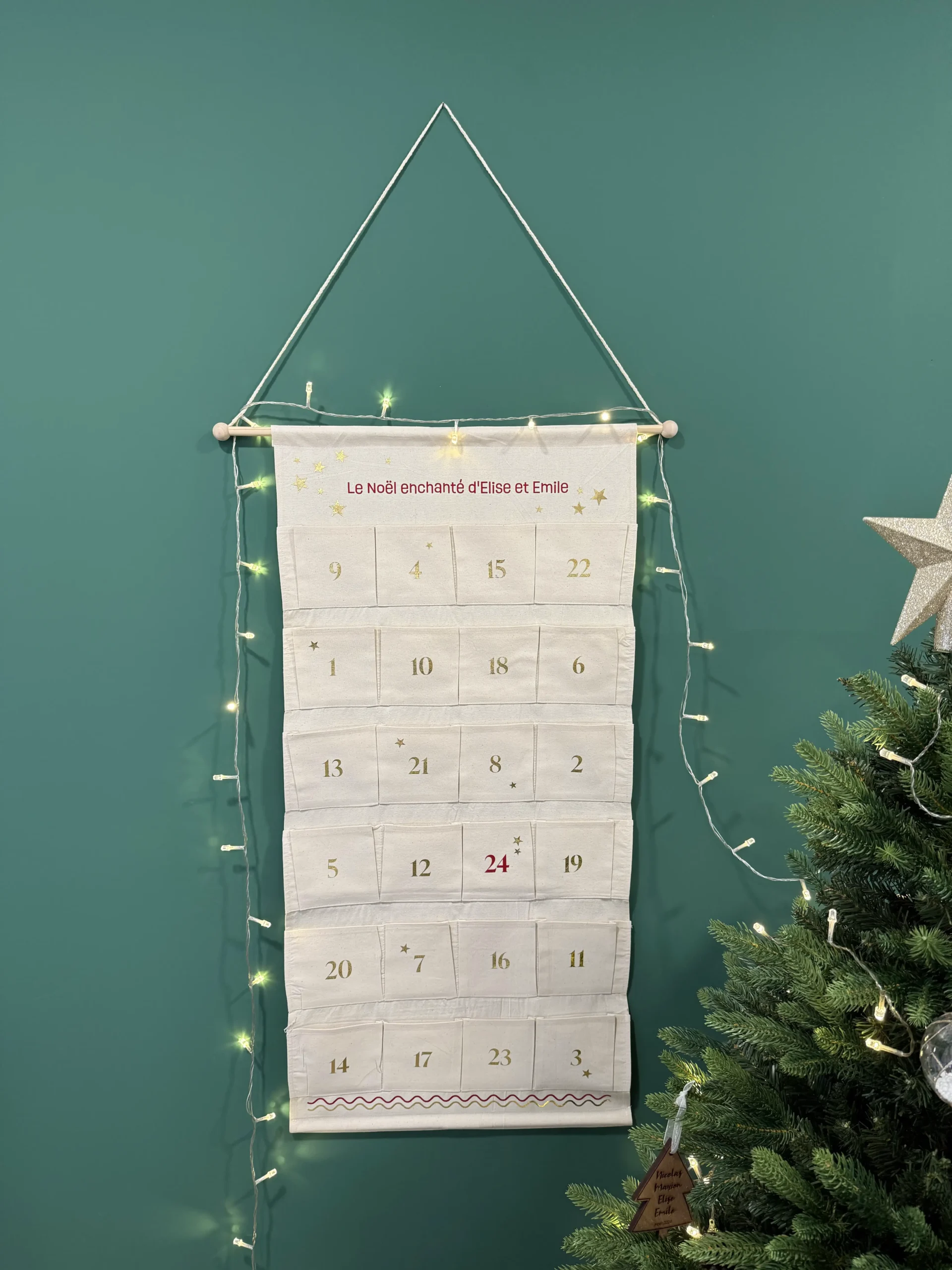 Faites patienter petits et grands jusqu’à Noël avec notre calendrier de l’Avent en tissu personnalisé, à la fois décoratif, durable et plein de magie 🎄.