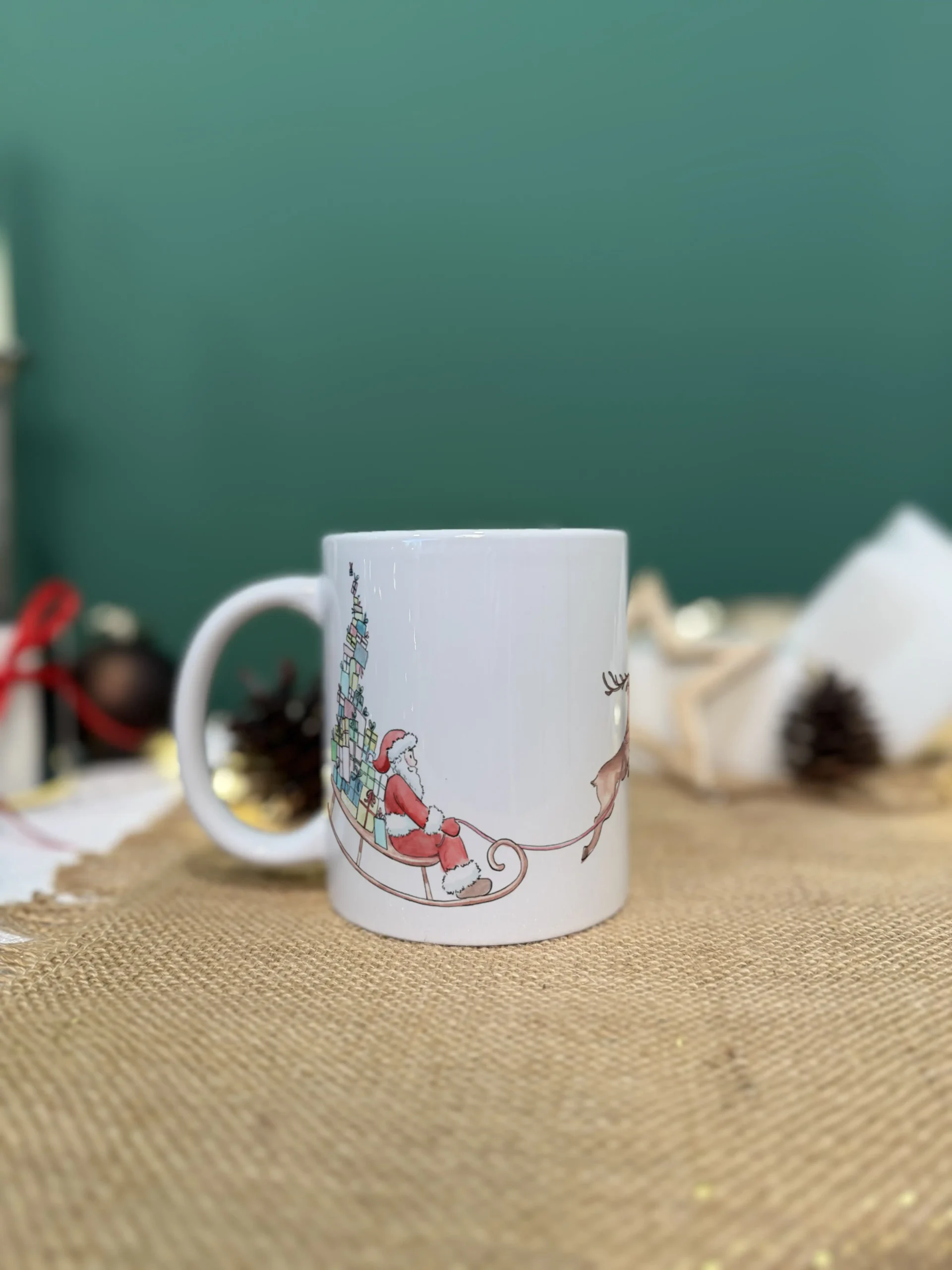 Survolant le ciel étoilé à bord de son traîneau tiré par ses fidèles rennes, le Père Noël transporte une montagne de cadeaux… et une bonne dose de bonne humeur ! Ce mug unique en céramique allie esprit festif et personnalisation pour offrir un objet à la fois chaleureux, amusant et chargé d’émotion.