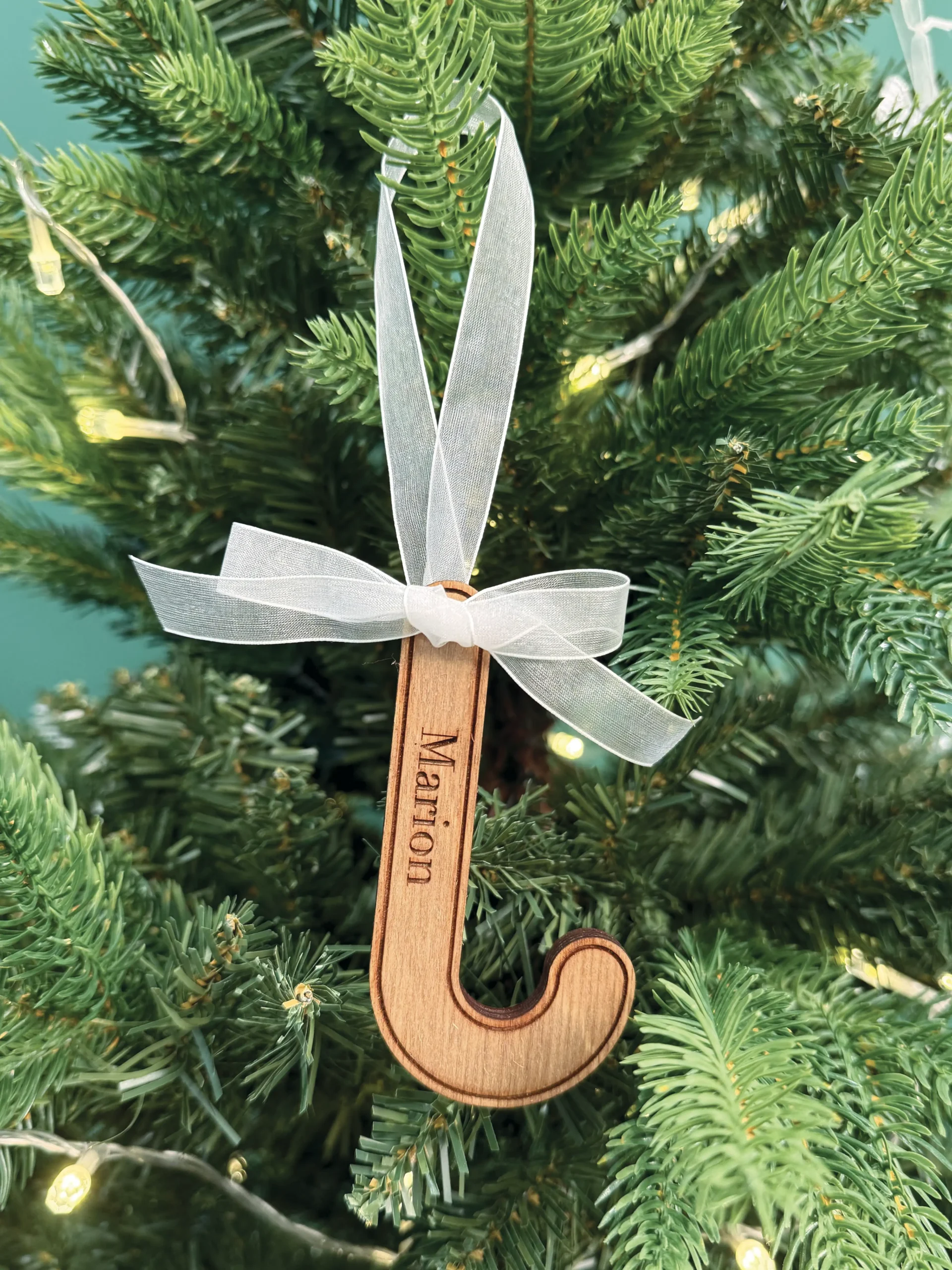 Ce sucre d’orge personnalisé en bois apportera une note unique à votre sapin.