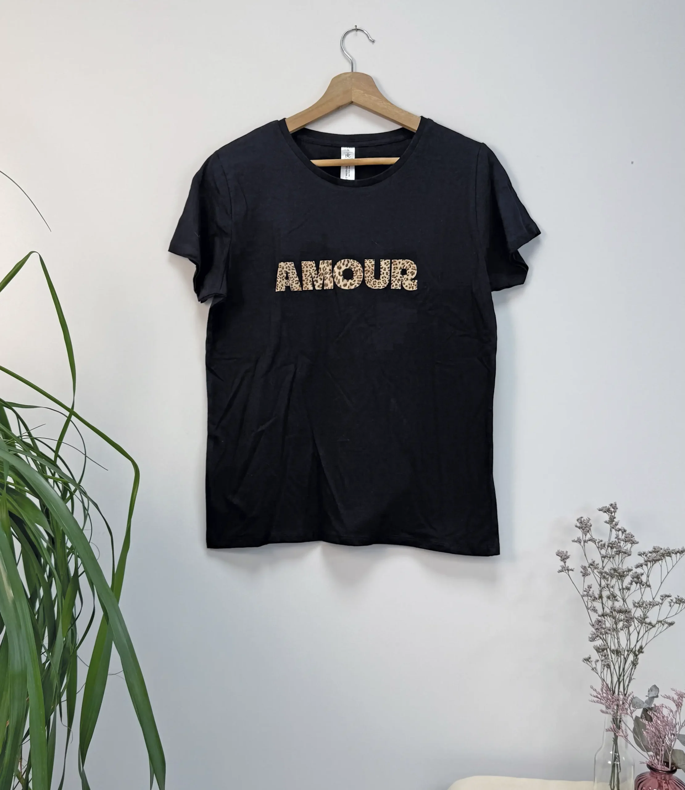 Tee-shirt femme noir avec marquage léopard : Amour